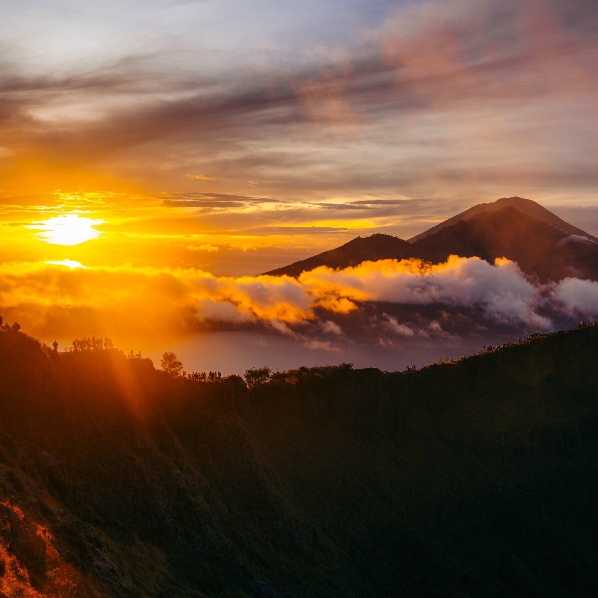 It’s a quieter, more otherworldly sunset spot in Bali, perfect for travelers who prefer crisp mountain air and volcano views over beach bars and big crowds. A local guide is essential as the descent happens in near darkness and trails aren’t always clearly marked. Alternatively, some viewpoints along the outer caldera can be reached by road, with no hiking required.